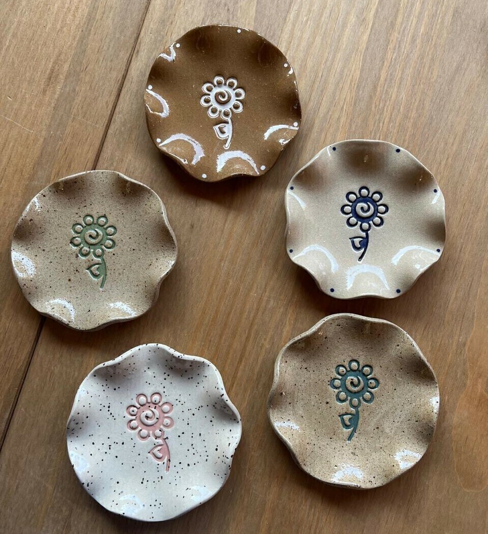 Encante-se com este porta-joias feito à mão, que alia funcionalidade e beleza em um design único. Com um delicado detalhe de flor e borda ondulada, esta peça em cerâmica artesanal é perfeita para manter suas joias organizadas com charme.