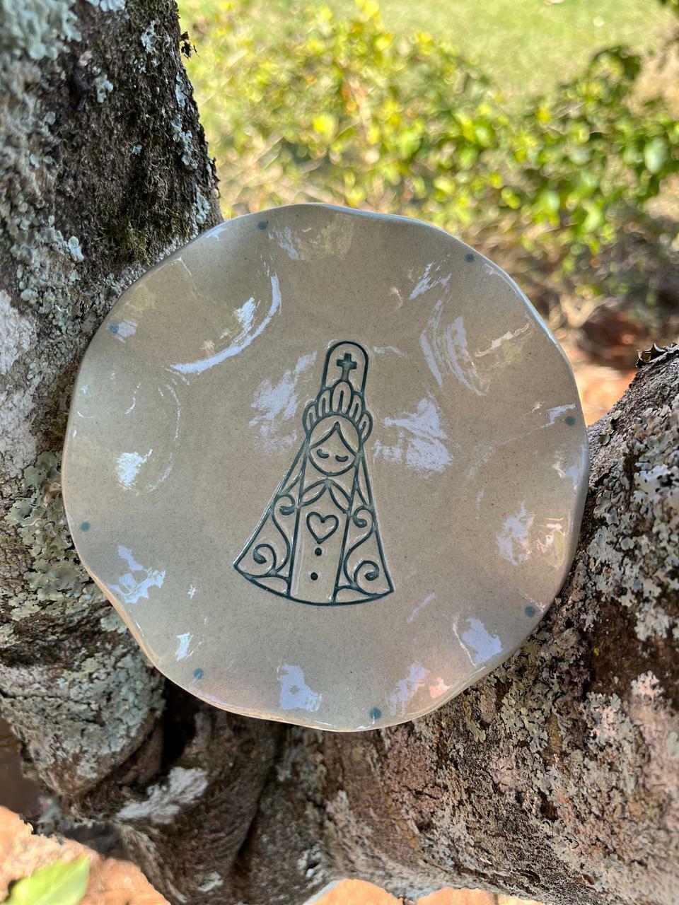 Encante-se com este porta-joias artesanal que une fé e beleza em um só objeto. Com a imagem de Nossa Senhora Aparecida, esta peça é perfeita para guardar seus acessórios com carinho e proteção.